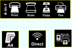 - Multifonctions A4 jet d'encre: imprime, scane, copie et fax en N&B et Couleur